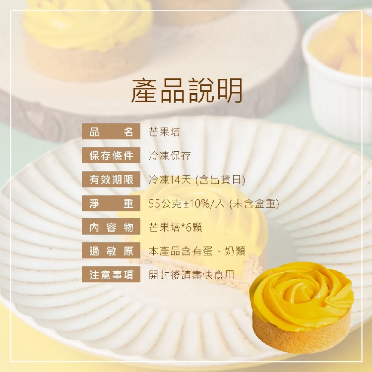 塔類: 冷凍保存7天左右,建議退冰3-5分鐘後為食用口感最佳,【勿冷藏】會塔皮潤影響口感