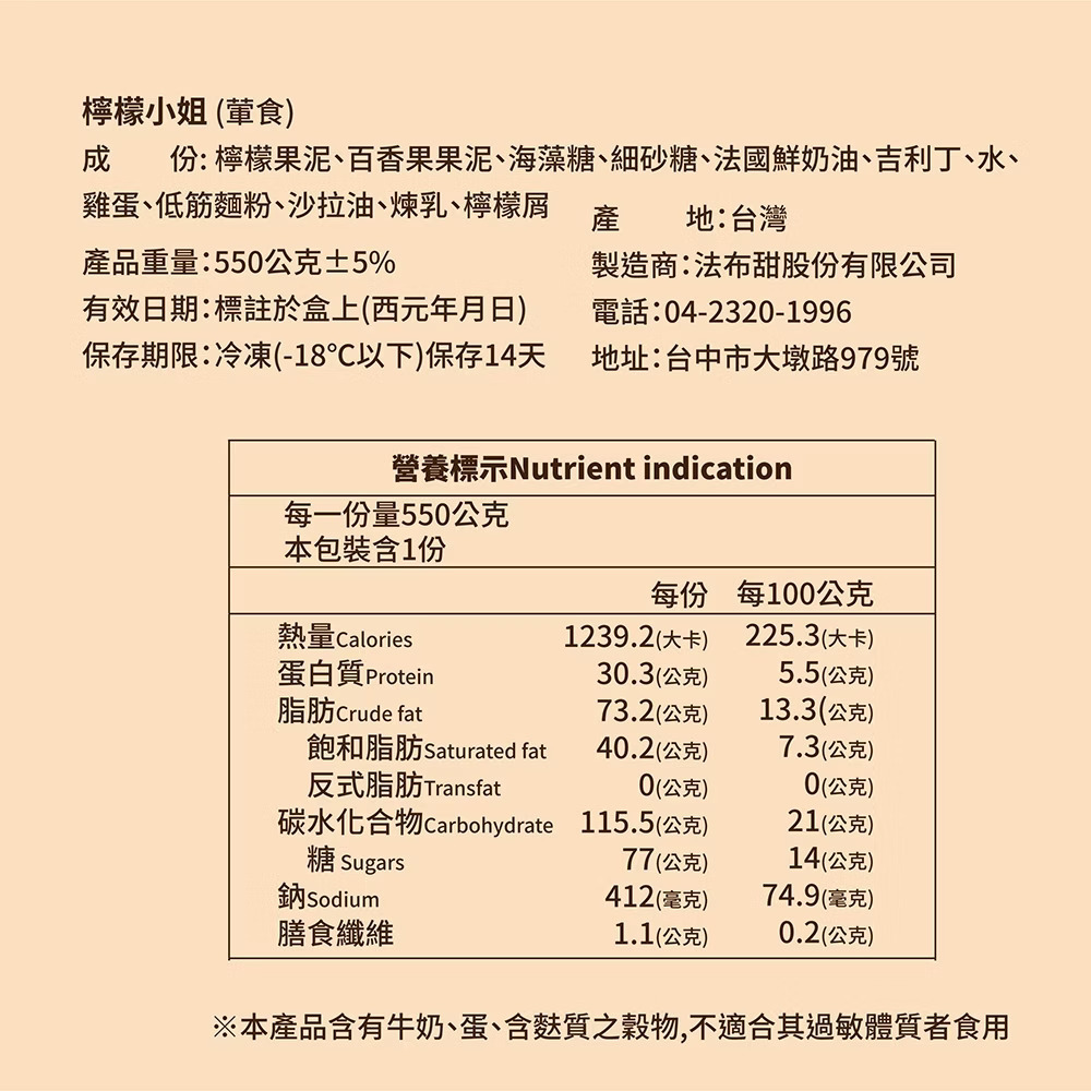 含檸檬小姐1入、蔓越莓橘子磅蛋糕1入、珍奶塔8入、芋頭塔8入。