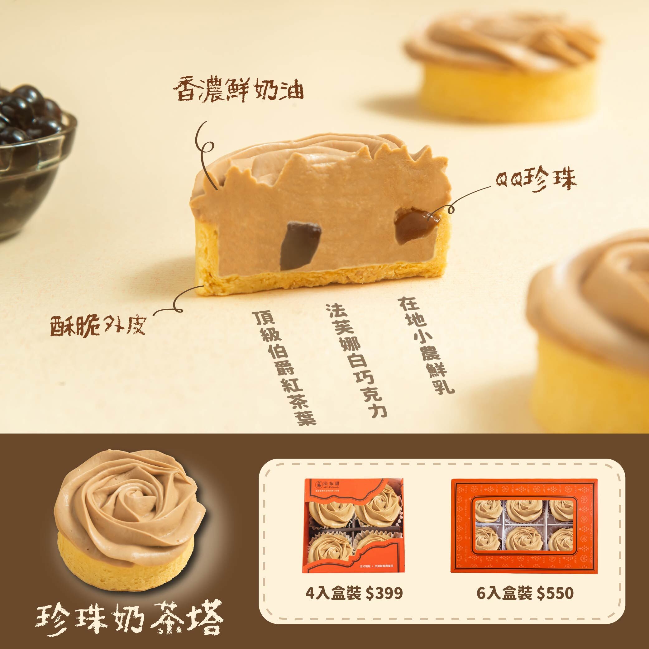 珍珠奶茶塔 6入裝/盒 (含提袋)