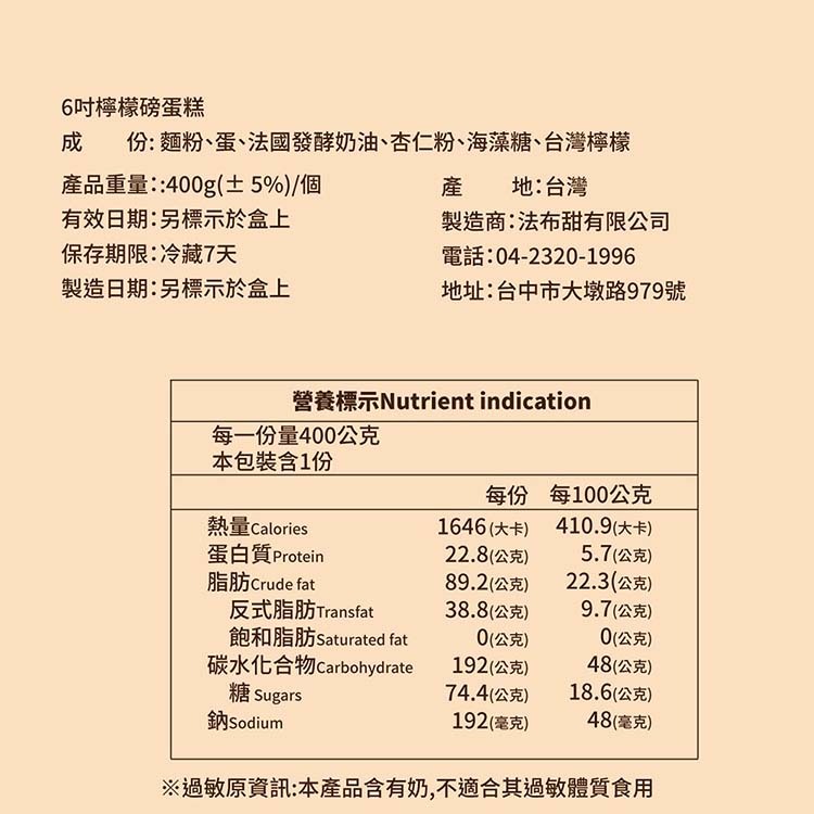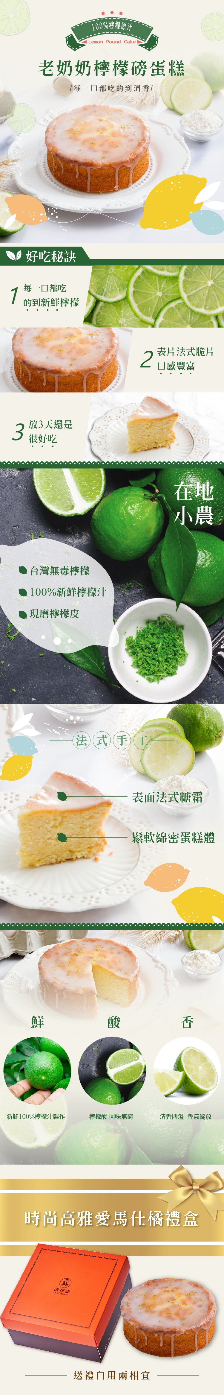 法布甜 老奶奶檸檬磅蛋糕 6吋 (附提袋)