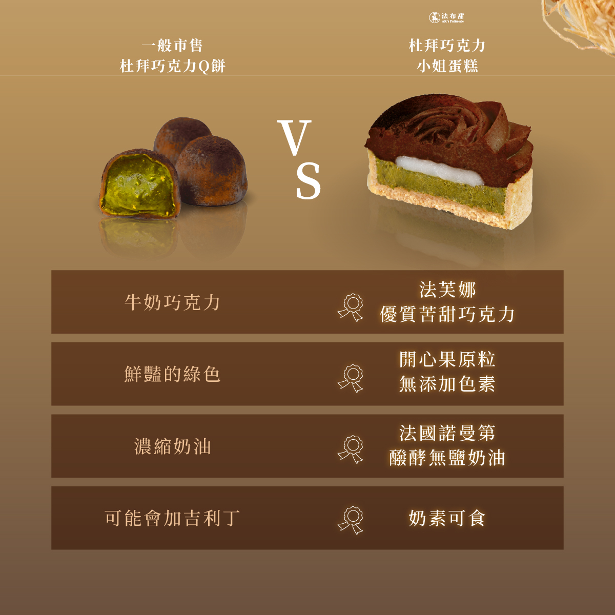 奢華復刻杜拜傳奇。以 Valrhona 阿拉瓜尼 72% 巧克力 封存正宗卡達伊夫絲 (Kadayıf) 的酥脆,內藏 Q 心麻糬 的軟糯驚喜。多層次結構帶來極致酥脆且低甜度的優雅體驗,繫住回憶,祝福未來。